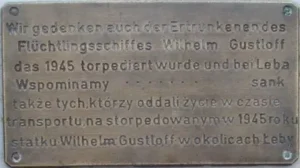 Metalowa, 16-to metrowa konstrukcja. Stoi u podstawy łebskiego zachodniego falochronu. Postawiony we wrześniu 2000 roku poświęcony pamięci marynarzy, rybaków, żeglarzy i tym , którzy nie powrócili z morza. Niestety corocznie morze zbiera swoje żniwo, a wszystko to przez lekceważenie ostrzeżeń i zakazów. Napis na obelisku :